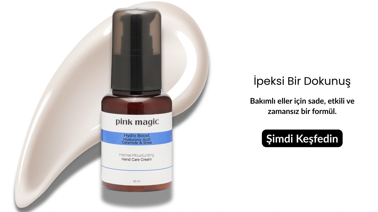 Gün boyu dış etkenlere maruz kalan eller, yaşın en hızlı fark edildiği bölgelerdendir. Pink Magic El Kremi, Ceramide, Shea Butter ve Hyalüronik Asit içeren formülüyle yoğun nem, onarım ve koruma sağlar; cilt bariyerini güçlendirir, ellerine genç ve ipeksi bir görünüm kazandırır.
