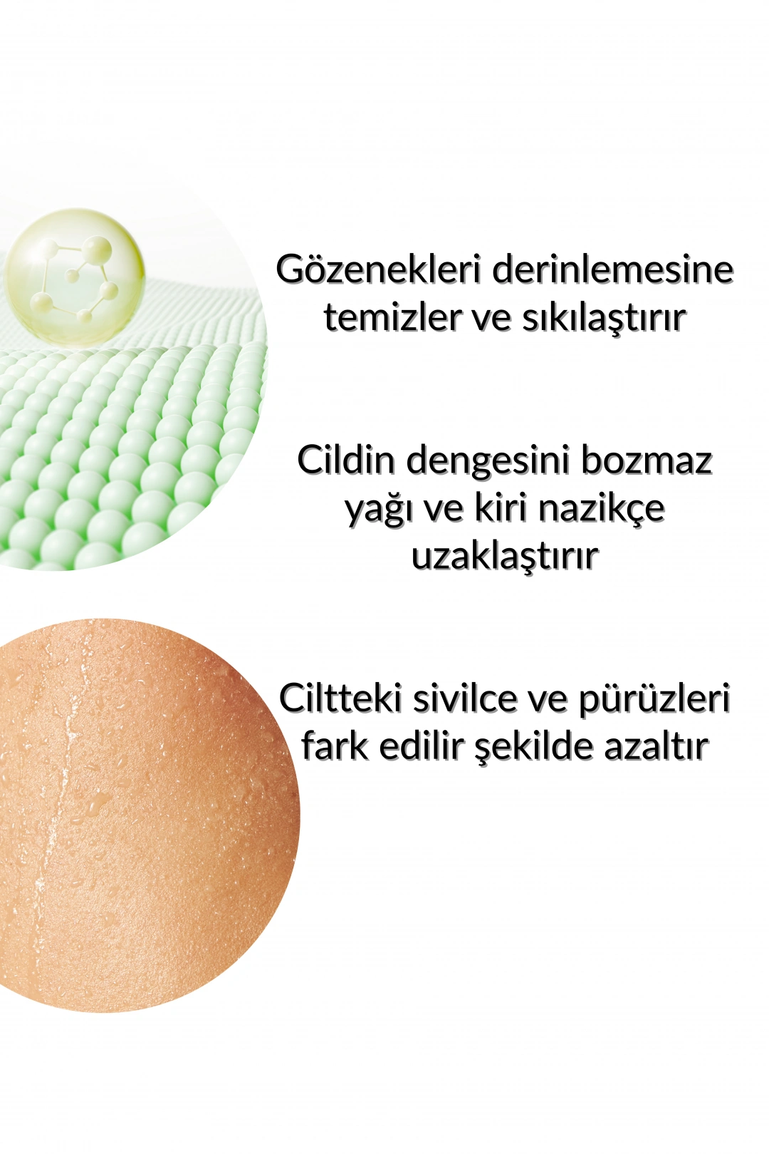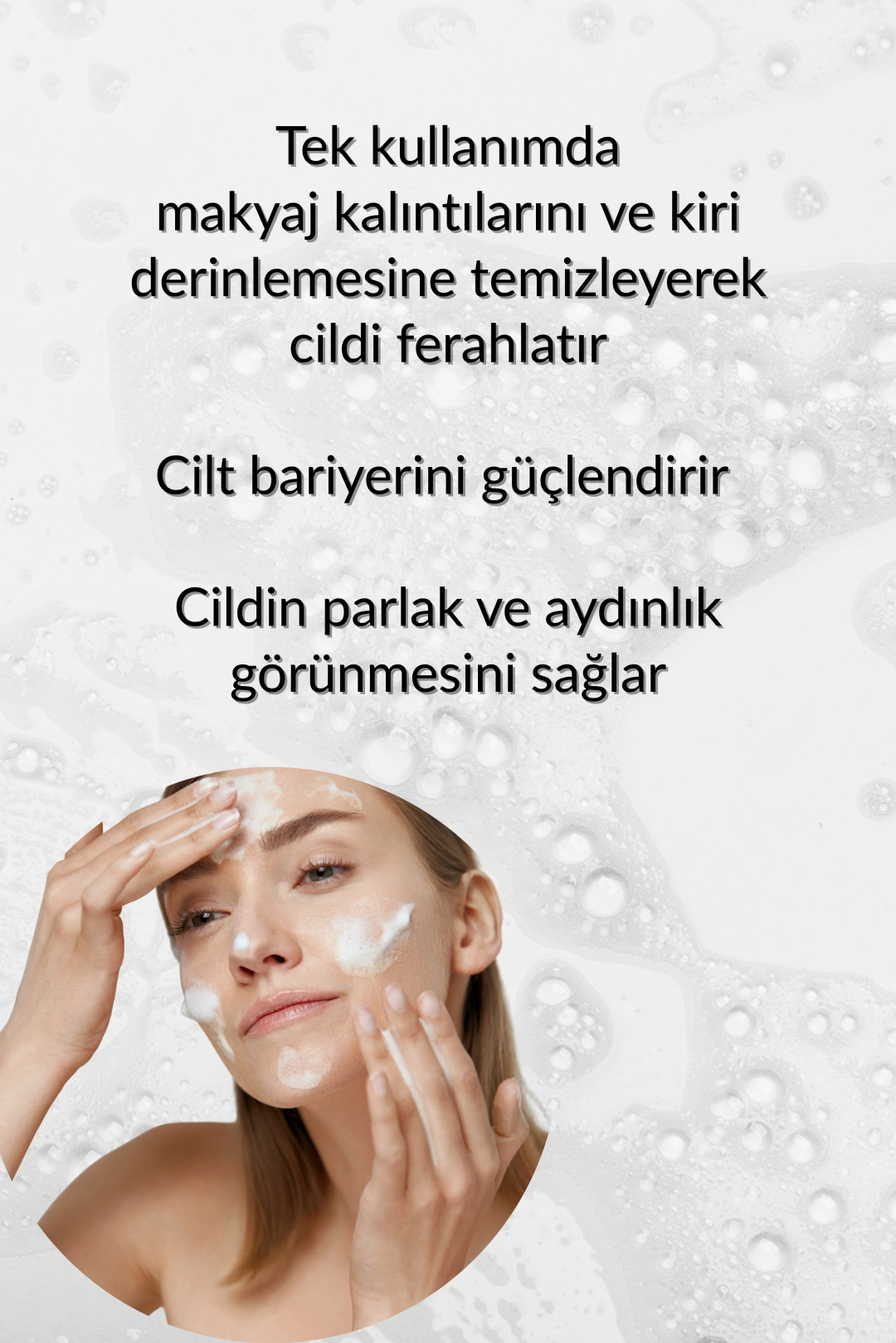 Ciltteki Etkisi Cildi derinlemesine temizler, gözenekleri arındırır. Makyaj ve kir kalıntılarını tek seferde uzaklaştırır. Ciltteki fazla yağı dengeleyerek sivilce oluşumunu önlemeye yardımcı olur. Cildi kurutmadan tazelik ve ferahlık sağlar. Düzenli kullanımda cilt daha pürüzsüz, canlı ve dengeli bir görünüme kavuşur.