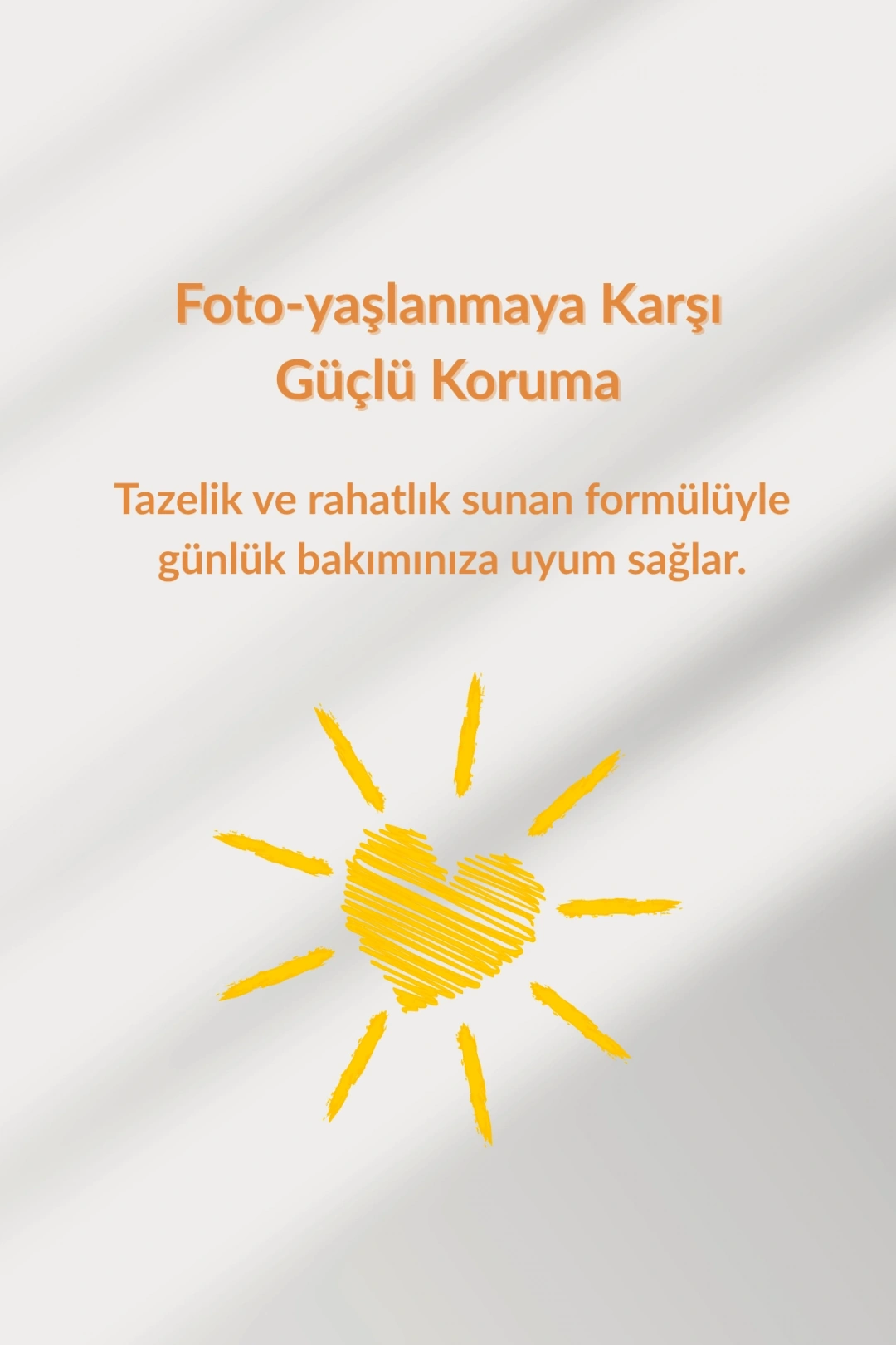 Güçlü UVA/UVB Koruması: Yüksek SPF filtresiyle cildinizi güneşin zararlı etkilerinden korur.
