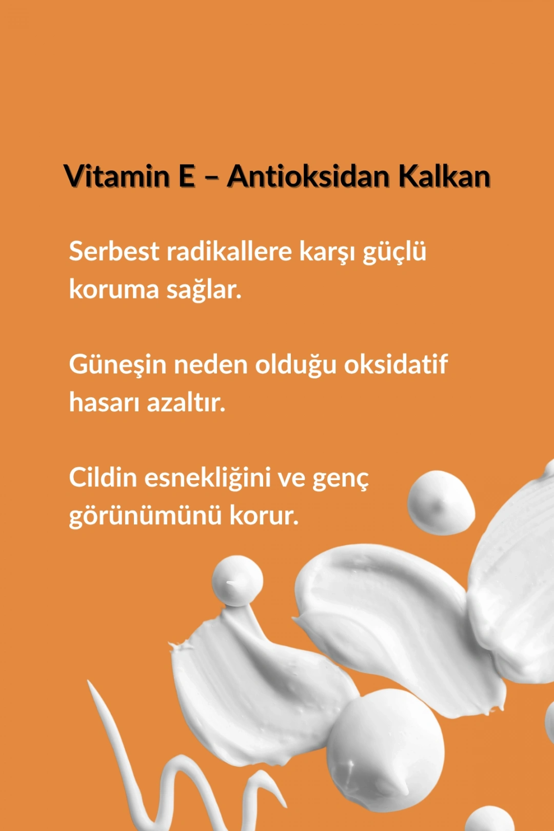 Aydınlık ve Eşit Cilt Tonu: E Vitamini ve antioksidanlar sayesinde cilt tonunu dengeler, ışıltılı bir görünüm sağlar.