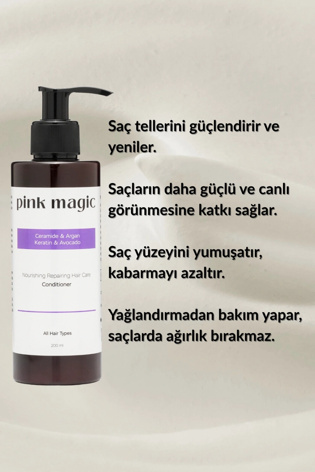 Günlük kullanımda saçlar daha güçlü, dolgun, parlak ve sağlıklı görünür. Yağlandırmayan hafif yapısı sayesinde tüm saç tiplerine uygundur.