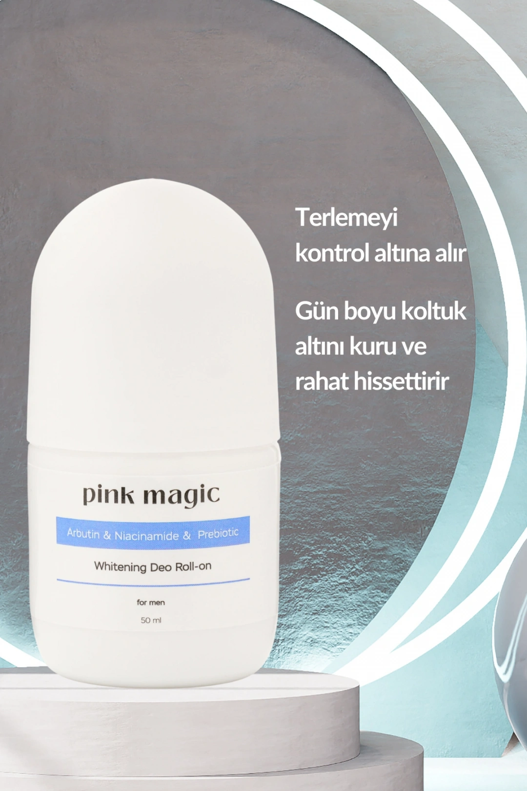 Pink Magic Erkek Roll-On, gün içinde yoğun terleme yaşayan erkekler için geliştirilmiş güçlü formülüyle ter kokusunu önlemeye yardımcı olur. Terlemeyi kontrol altına alır, pudralı yapısı koltuk altının gün boyu kuru kalmasını sağlar. Niacinamide ve Arbutin desteği ile koltuk altındaki kararmaların görünümünü azaltır, cilt tonunu eşitlemeye yardımcı olur. Tahriş ve yanma hissini azaltır; sık tıraş olan erkeklerin cildine bakım sağlar. Alkol içermeyen yapısıyla hassas ciltlerde güvenle kullanılabilir. Kıyafetlerde iz bırakmayan formülü uzun süreli temizlik ve ferahlık sunar.