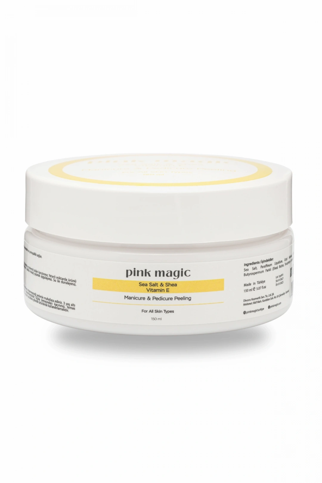 Pink Magic Manikür & Pedikür Peeling, özel formülüyle tırnakları ve cildi besler, nemlendirir ve yumuşacık bir his kazandırır. İçeriğindeki deniz tuzu ölü deriyi arındırarak pürüzsüzlük sağlarken, Shea Butter yoğun nem desteği sunar. Salicylic Acid cildi pürüzsüzleştirir ve yeniler, E Vitamini ise antioksidan etkisiyle bakım yapar. Düzenli kullanımda elleriniz ve ayaklarınız daha bakımlı, canlı ve sağlıklı bir görünüme kavuşur. Spa deneyimini evinize taşıyan bu peeling, yumuşacık bir dokunuş sağlar. Deniz tuzu ile ölü deriyi arındırır. Shea Butter ile yoğun nemlendirme sağlar. Salicylic Acid ile pürüzsüz ve yenilenmiş cilt sunar. E Vitamini ile antioksidan bakım yapar. Tırnakları besler, cildi yumuşatır. Evde profesyonel manikür & pedikür deneyimi yaşatır.